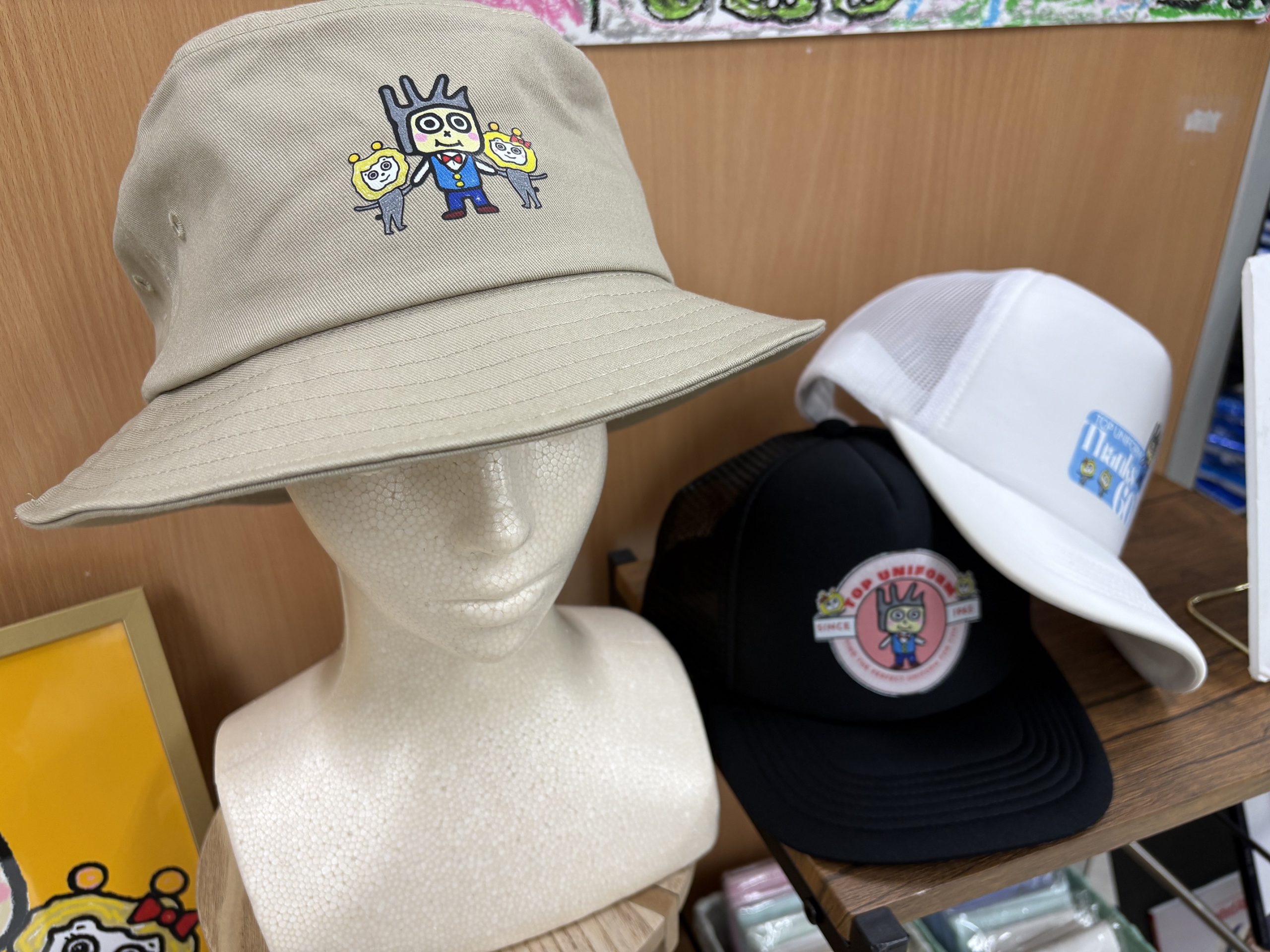 当店では、キャラクターデザインを使用した帽子サンプルも作成しています。